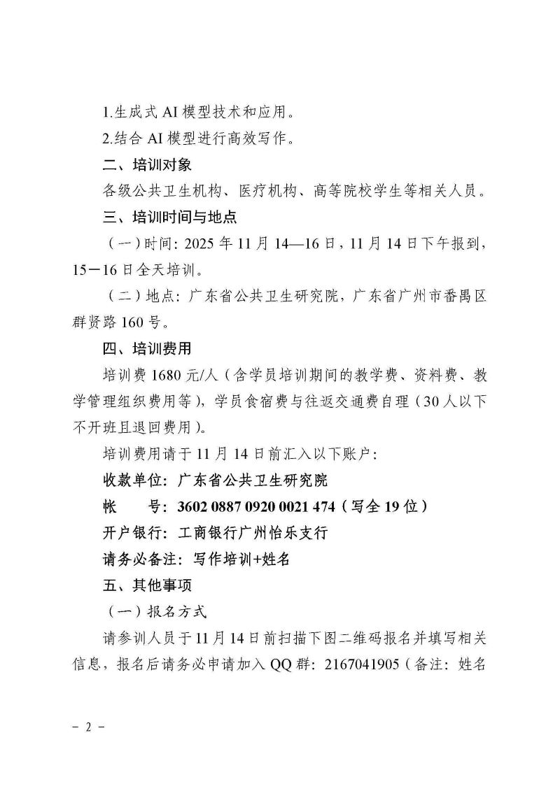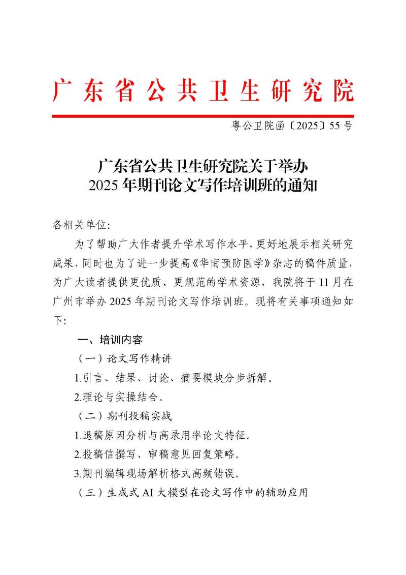 广东省公共卫生研究院关于举办2025年期刊论文写作培训班的通知.pdf